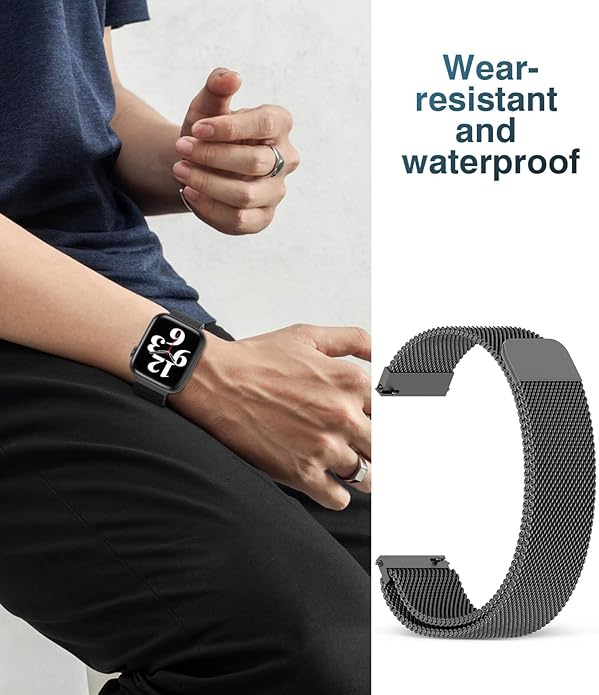 - 🎁【Quality materials】-Our metal strap is made of stainless steel Milanese mesh, about 1.6 mm thick, 360° turnable and soft to fit your skin. The thin, solid mesh, abrasion-resistant and breathable stainless steel strap is both comfortable and high-end. The magnetic clasp has a strong iron inside to provide a strong clamping force.The metal mesh strap is lightweight and breathable, waterproof and sweatproof, making it more comfortable for you to wear.
