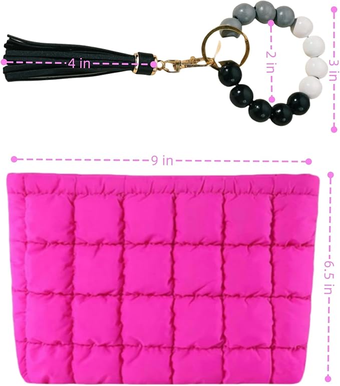 Puffy Makeup Bag Quilted Pouch Puffer Make Up Bag for Purse Cosmetic Bag for Women (Hot Pink)