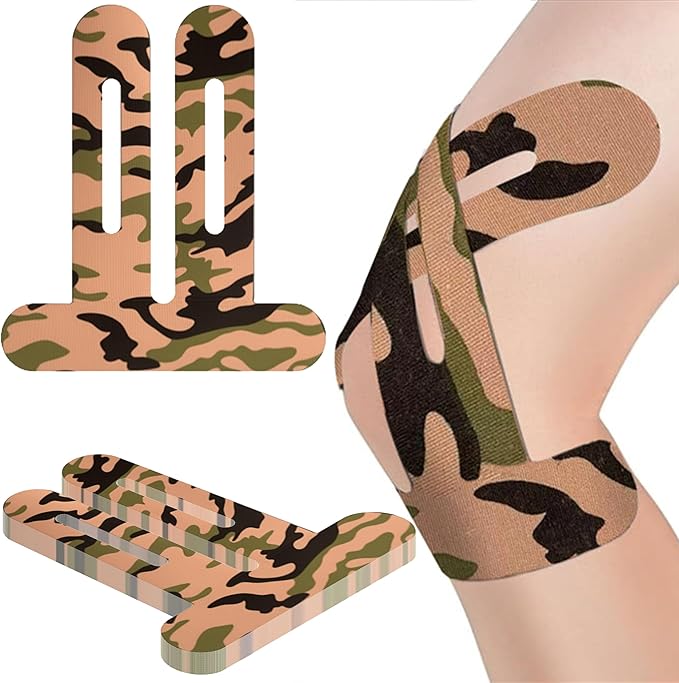 Precut Kinesiology Tape for Knees,24 Pcs – Elastic Knee Support & Stability, Pain Relief – Waterproof, Breathable, Hypoallergenic Athletic Tape (Camouflage)