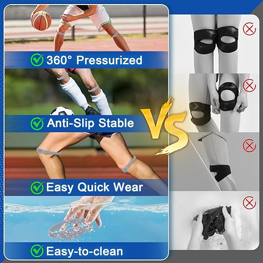 - 【All-Day Stability】 Reinforced elastic bands and anti-slip silicone lining keep the patellar strap securely in place, even during rapid lateral movements or sprints