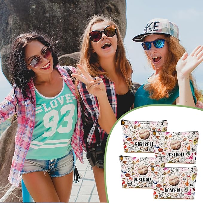 4pcs Baseball Gifts Makeup Bag, Baseballs Coach Cosmetic Bag Christmas Birthday Gifts for Women Female Coach Girls Sister BFF, Baseball Stuff Sports Lover Gift Travel Toiletry Bags