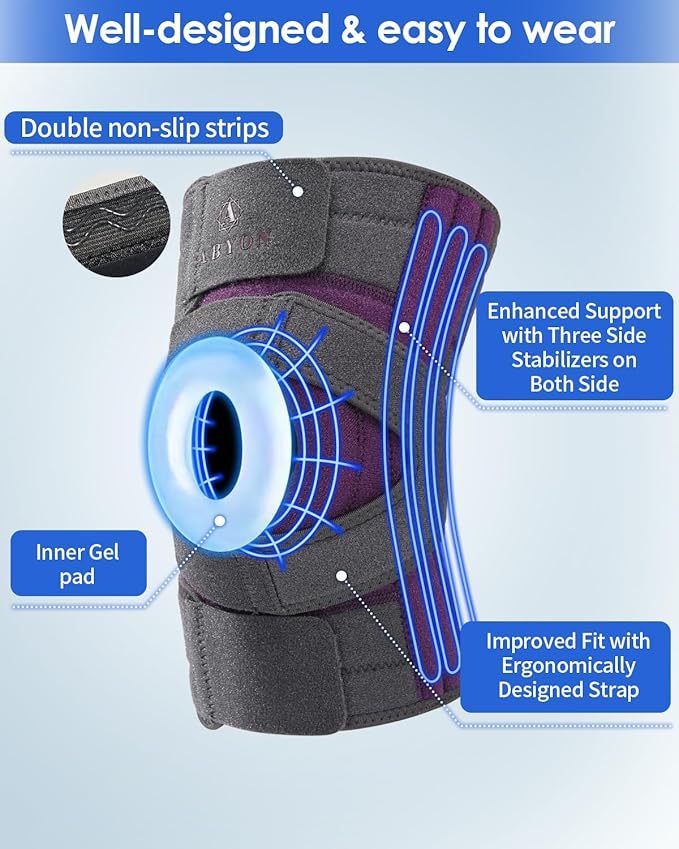 ABYON Knee Brace for Men & Women, Maximum Support with Triple Side Stabilizers & Patella Gel Pads for Knee Pain Support and Fast Recovery, Wraparound Y-Strap Targets Support for Meniscus Tear, ACL, Arthritis Relief - Please Check How To Size Video