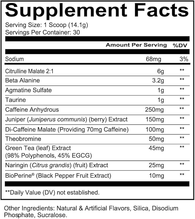 - Professional Grade Formula - 6g of l citrulline malate + 45mg of green tea extract + 150mg of juniper helps boost nitric oxide levels to deliver nutrients and help increase blood flow. Our 'pump' effect keto pre workout is formulated with premium ingredients backed by science and made for athletic people of all skillsets.