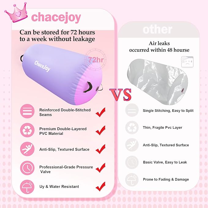 - Durable Air Barrel for Daily Use and Progress: Made from premium-grade PVC tarpaulin with reinforced seams, our air roller gymnastics barrel provides excellent air retention, anti-slip surface texture, and rugged performance. Ideal for consistent use at home, studio, or gym floor.