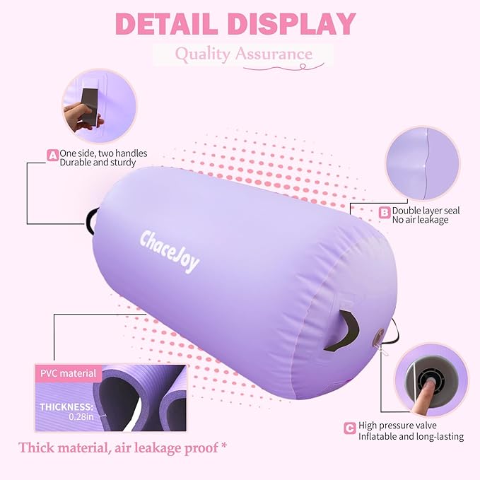 - Versatile Training Tool for Progress and Safetyl: Whether you're starting with basic rolls or advancing into power moves, this air roller is a reliable back handspring trainer, tumbling barrel, and balance aid. Support your growth in gymnastics, cheerleading, dance, and more—all in one durable tool.