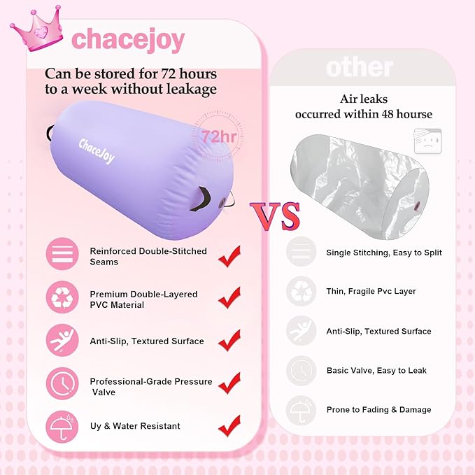 - Train Smarter with Supportive Bounce and Control: The ChaceJoy air roller gymnastics barrel helps improve body coordination, form, and stability when practicing back handsprings, handstands, and core drills. Its responsive rebound gives just the right lift while minimizing strain on joints and muscles.
