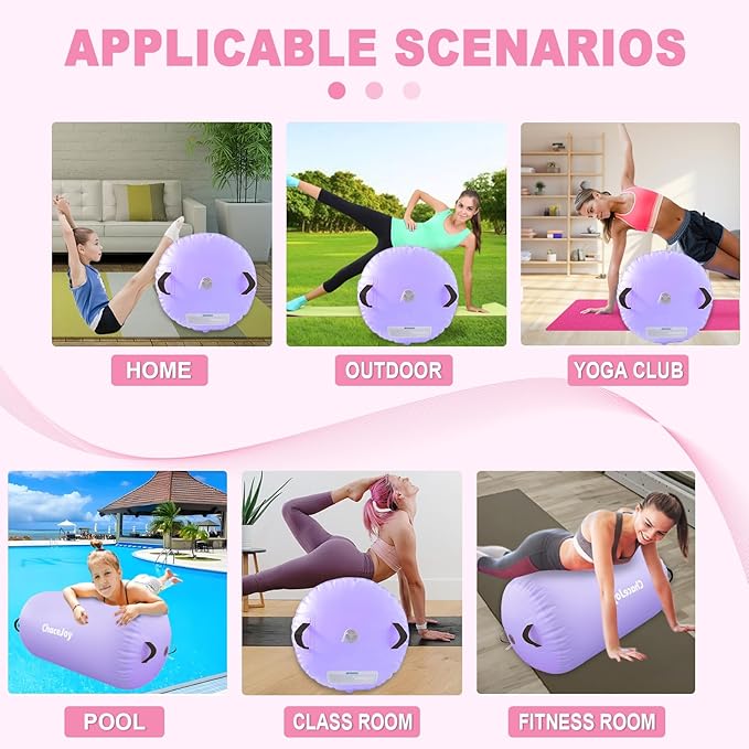 - Ready for Use at Home Gym Studio or Outdoorsl: Perfect for cheer training, tumbling practice, yoga, and balance exercises. This lightweight inflatable roller can be used on gym floors, carpets, grass, or indoors—ideal for athletes training on the go or at home.