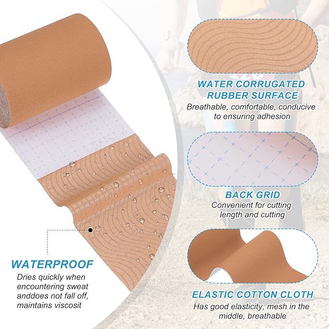 - Advantage: The sports tape is made of latex-free cotton and stretch nylon. It has good stretchability and can stretch about 60%. The mesh and water ripple design in the middle of the cotton cloth provides good comfort and breathability, which is conducive to ensuring adhesion and quick drying after sweating and not falling off
