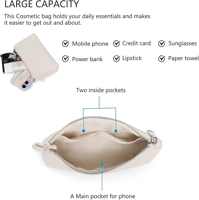 - 【Capacity】Suitable capacity, 1 main bag, can hold mobile phones, wallets, lipsticks, air cushions and other items. 2 inner pockets for small items such as tissues, credit cards, and change, making your bag less cluttered.