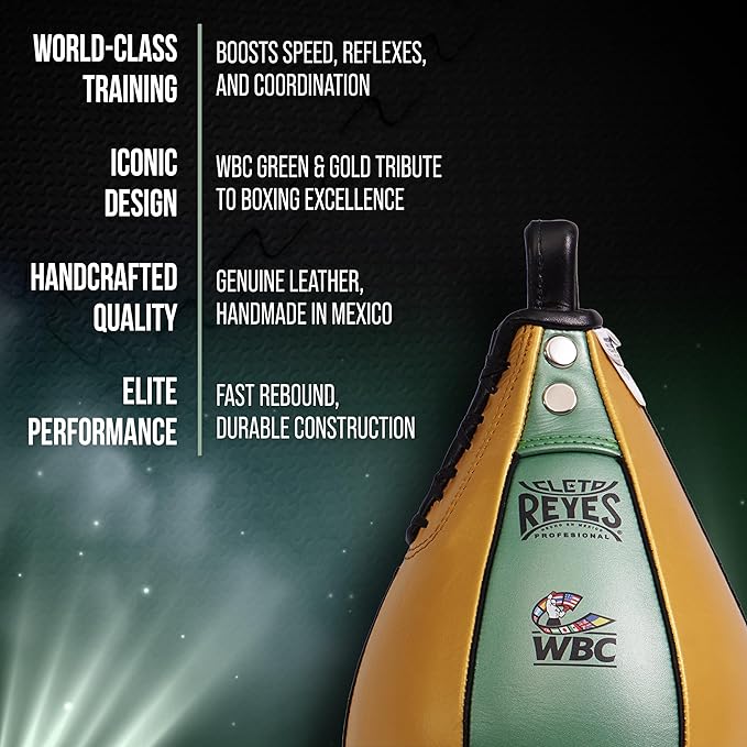 - WBC EDITION: Crafted in the iconic green and gold colors of the World Boxing Council, our WBC speed bags for boxing, MMA, and Muay Thai embody elegance and distinction; designed to enhance reflexes, coordination, and punching speed with every strike