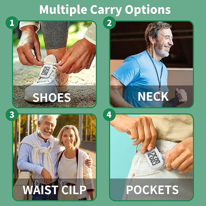 - PORTABLE AND LIGHTWEIGHT: This pedometer features a compact design that is easy to carry around. Comes with a detachable clip and lanyard, can be clipped to a pocket, belt or belt, hung around the neck, or placed in a pocket or bag