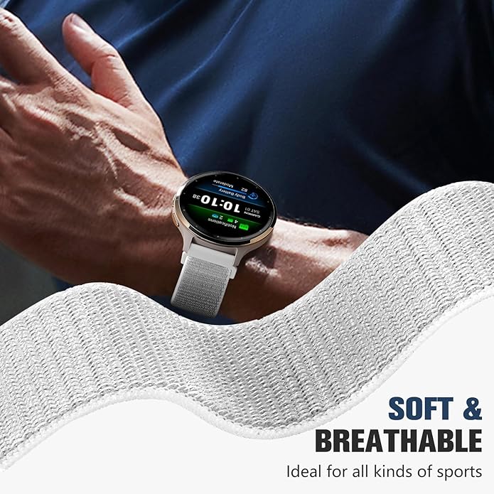 18mm 20mm 22mm Hook and Loop Watch Band Compatible with Garmin Vivoactive 5/ Vivoactive 6/ Vivoactive 3, Soft Nylon Breathable Sport Strap for Venu 2S/ Venu3S/ Forerunner 265s,Venu 3/ Venu 2 Men Women