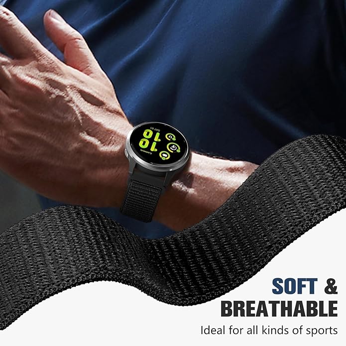 18mm 20mm 22mm Hook and Loop Watch Band Compatible with Garmin Vivoactive 5/ Vivoactive 6/ Vivoactive 3, Soft Nylon Breathable Sport Strap for Venu 2S/ Venu3S/ Forerunner 265s,Venu 3/ Venu 2 Men Women
