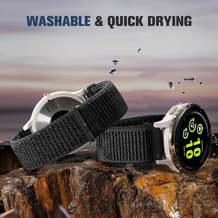 • Ultra-Comfort Breathable Nylon Strap: Engineered with premium moisture-wicking nylon, this featherlight replacement sport 20mm watch band contours to your wrist with cloud-like softness. Its advanced airflow weave technology actively combats sweat accumulation, maintaining all-day freshness whether you're crushing workouts or navigating daily tasks
