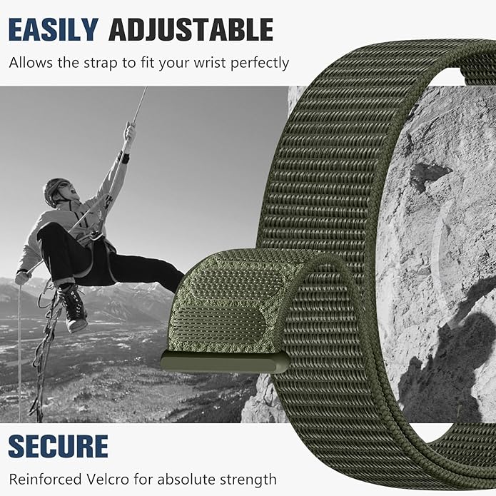 - Ultra-Secure Adjustable Fit: Say goodbye to slipping watch bands! Our Vel-cro closure provides a fully customizable fit (5.5"–8.3" wrist size) with micro-adjustability for the perfect snugness. The reinforced stitching and high-grip hook-and-loop design ensure your smartwatch stays firmly in place, whether you're running, lifting weights, or swimming. No more readjusting mid-workout—this strap locks securely while remaining easy to reposition