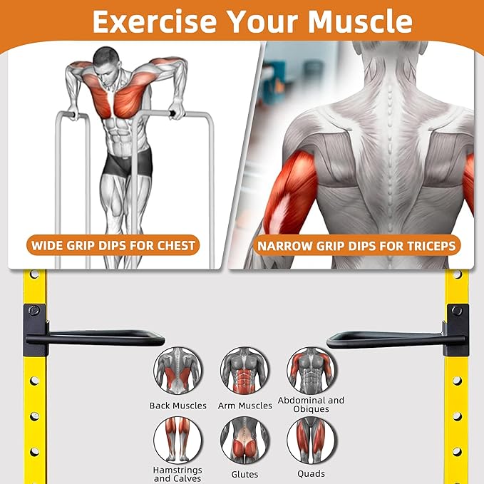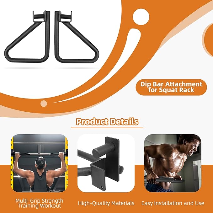 Dip Bar Attachment for Squat Rack, Multi Grip for Strength Training, Pull up, Push up 2x2 inch Power Cage Squat Rack, Pair