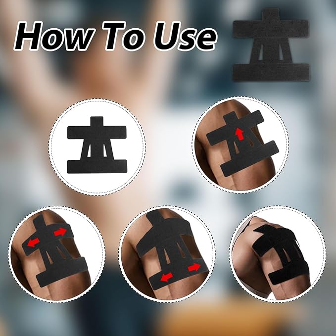 - Easy Application: Our precut shoulder tapes feature a self-adhesive backing for hassle-free application. For best results, peel a corner first, position the tape on your shoulder, then gradually peel off the backing paper to avoid sticking issues. Quick, secure, and mess-free!