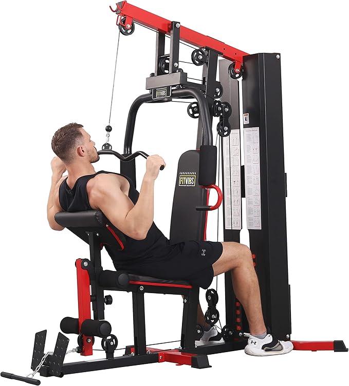 - 【Resistance】Home gym system has a 122.5 pound vinyl weight stack (including), with a resistance of up to 330 pounds. You can train and adjust to fit all fitness levels