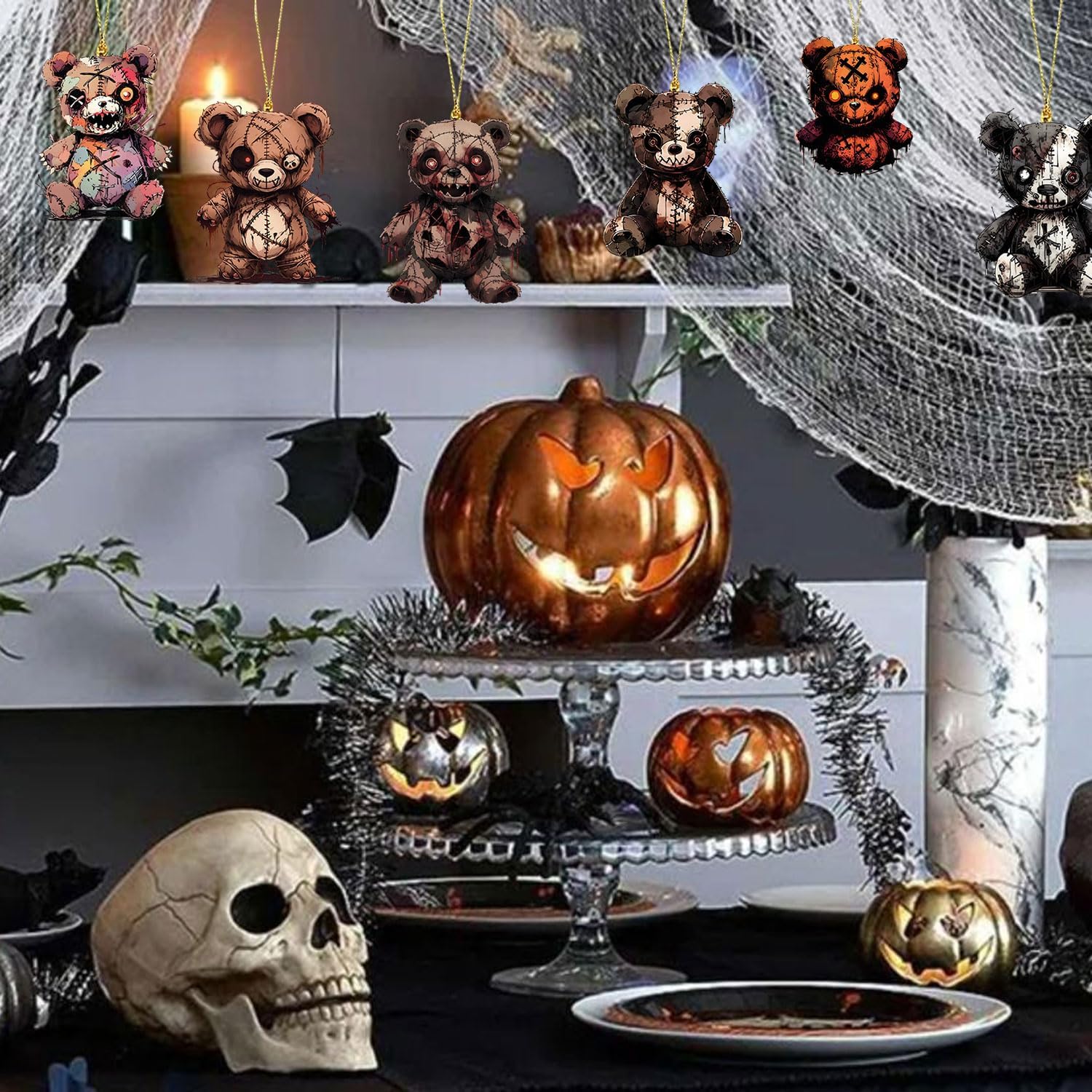 Halloween Tree Decoration, 6 Pcs Cute Acrylic Pendant, Terror Cartoon Bear Halloween Accessories, Funny Cartoon Christmas Tree Ornaments for Mini Decorations Indoor Outdoo
