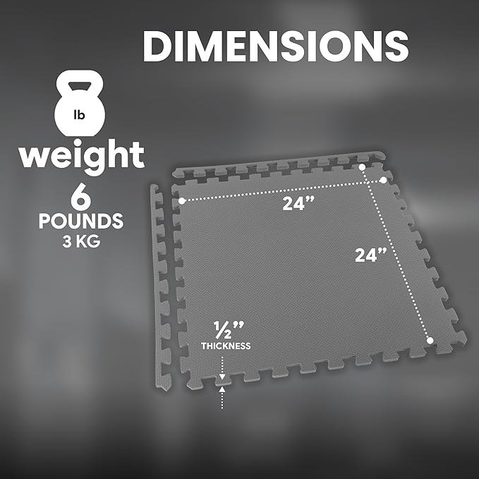 - Large 48 Square Foot Space: 12 24 x 24-inch foam exercise tiles with interlocking edges and 24 end borders for 48 square feet of durable support in your home, gym, or daycare