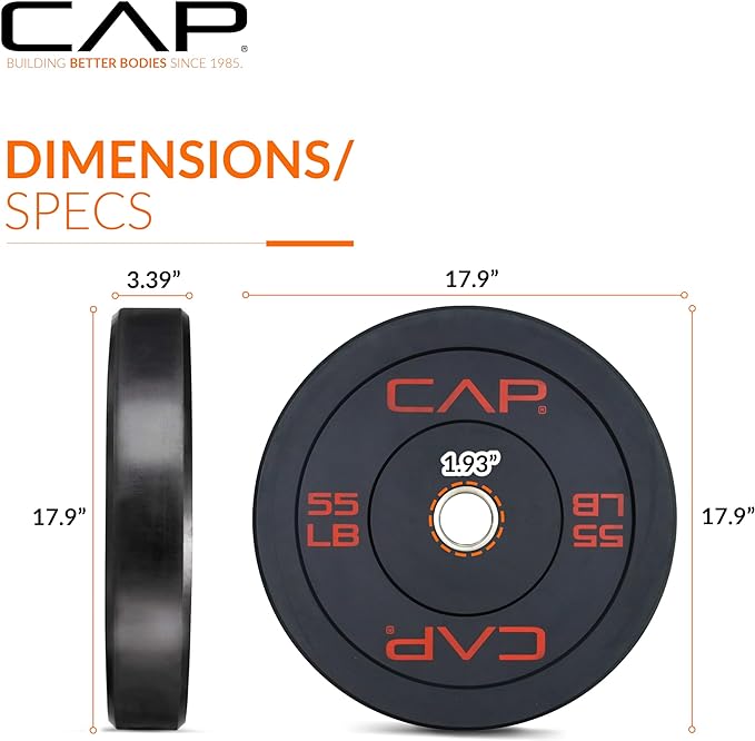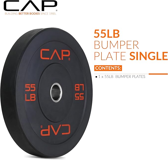 - WHAT’S INCLUDED – One 55-pound Budget bumper weight plate in black; Designed to accommodate Olympic barbells (with 2-inch center hole)
