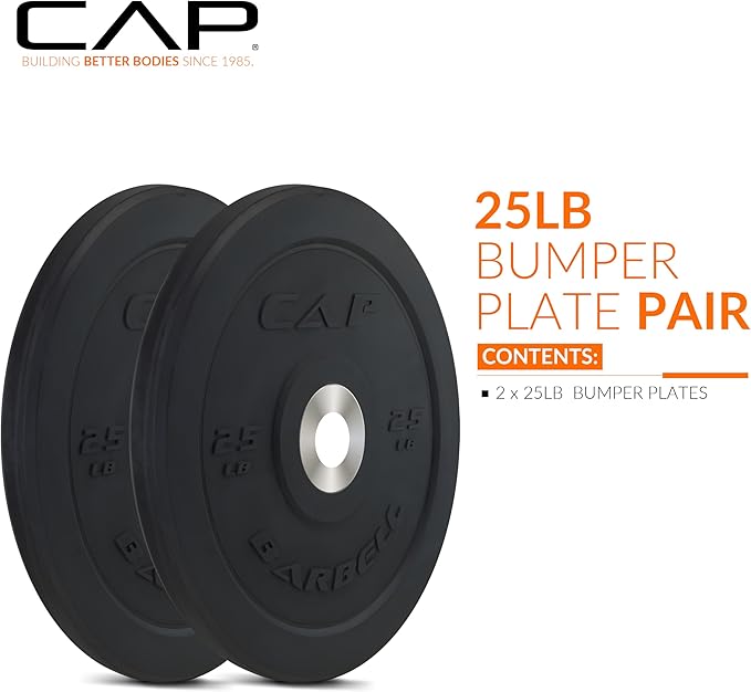 - WHAT’S INCLUDED – TWO 25-pound Best bumper weight plates in black; Designed to accommodate Olympic barbells (with 2-inch center hole)