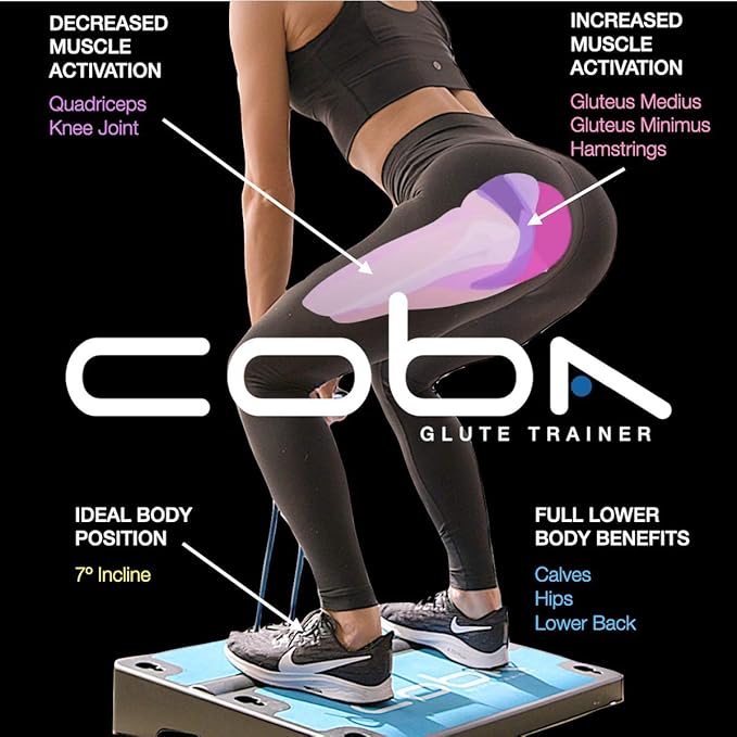 - BETTER THAN SQUATS: The largest muscle group in your body (glute muscles) can be the laziest and most difficult to activate. The COBA Glute trainer is proven to increase glute muscle activation faster, safer and more effectively. Itis the only portable piece of equipment in the marketplace with functionality to work the gluteus maximus, gluteus medius and gluteus minimus. You can squat until you drop but you won’t achieve these unparalleled benefits.