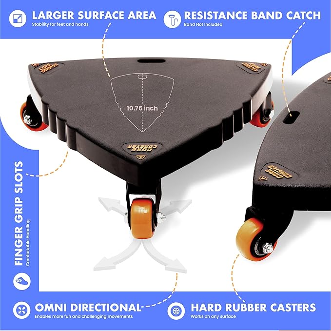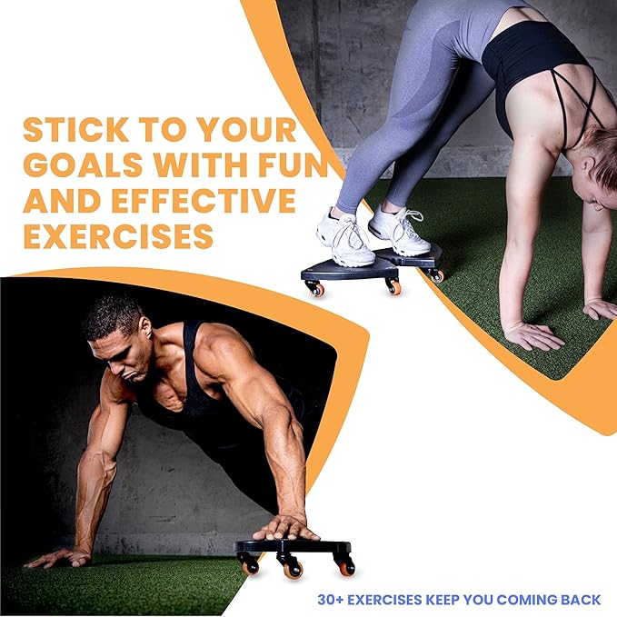 - Effective and Versatile - Core Coasters come with an exercise instructions poster with 30 fun, challenging, and dynamic movements for any fitness level to develop core strength, flexibility, and body coordination. You will not find core exercise equipment that allows for this much variation in movement for a complete core workout. An ab wheel roller only goes in one direction, sliders only work on the carpet, but the Core Coaster is the best of all abdominal exercise equipment.