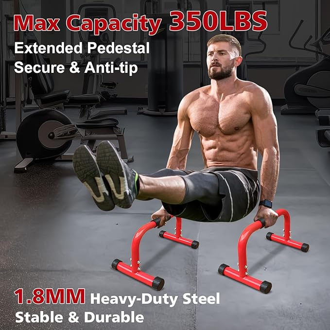 - 【Heavy-duty & Stable Design】 LSKSSNG Dip bar can carry up to 350LBS. The push up bar is made of fully welded heavy duty steel, the thickness of the steel tube is 2mm. Ergonomic design provides absolute stability. Two screws on each side versus one and great bar diameter to increase the stability of the push-up bar.