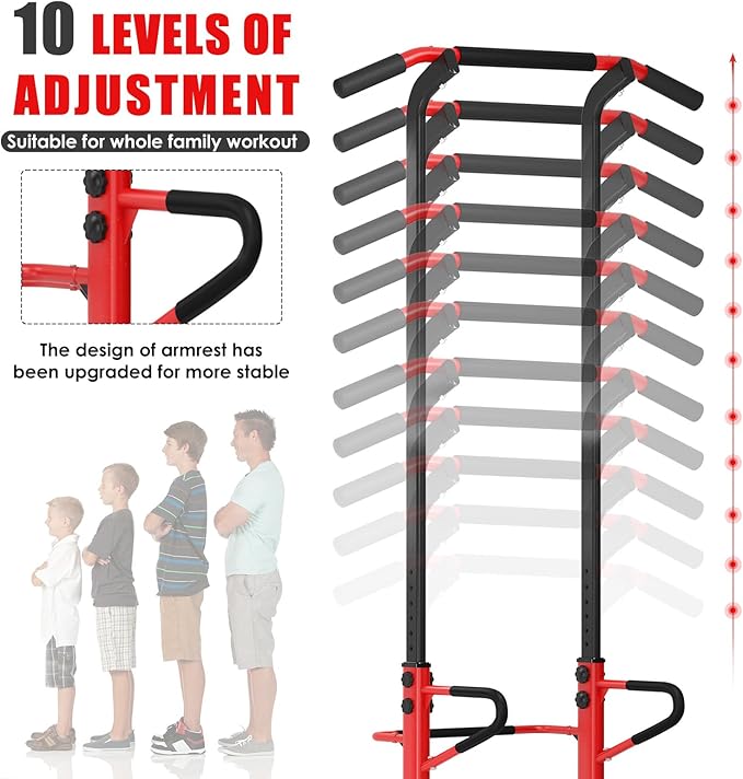 - 【Multi-functional】: With this kind of equipment, you can easy to Chin up, Dips, Vertical Knee Raises, Push-ups and Reverse grip chin up whenever and wherever possible. Perfect for adults or children to grow workout, fitness enthusiasts and the elderly exercise.