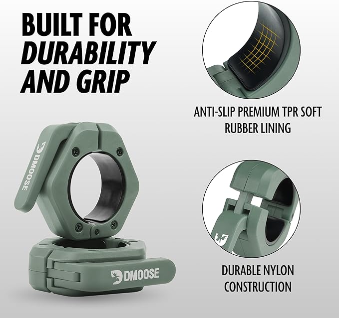 - πππππππ ππππππππππππ ππππ ππππ-ππππ ππππ: Built for durability and reliability, DMoose Barbell Collar is constructed with high-quality nylon polyamide and premium TPR soft rubber lining. The anti-slip grip of the Barbell Clamp ensures your weights stay in place, providing a safe and effective lifting experience. Trust in the robust build to withstand the toughest workouts and last for years, delivering consistent performance.