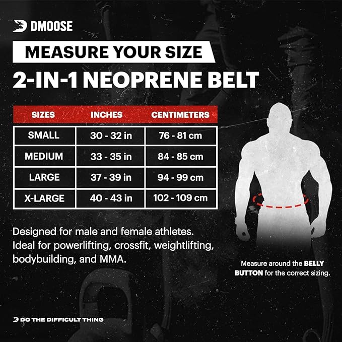 - SAY GOODBYE TO BACK INJURIES: Weightlifting can strain your lower back, making you more vulnerable to injuries. However, DMoose 2-in-1 Neoprene Belt offers a tailored solution specifically designed for weightlifters. This innovative belt serves as a protective barrier, providing the essential support you need to maintain proper posture during weightlifting sessions.