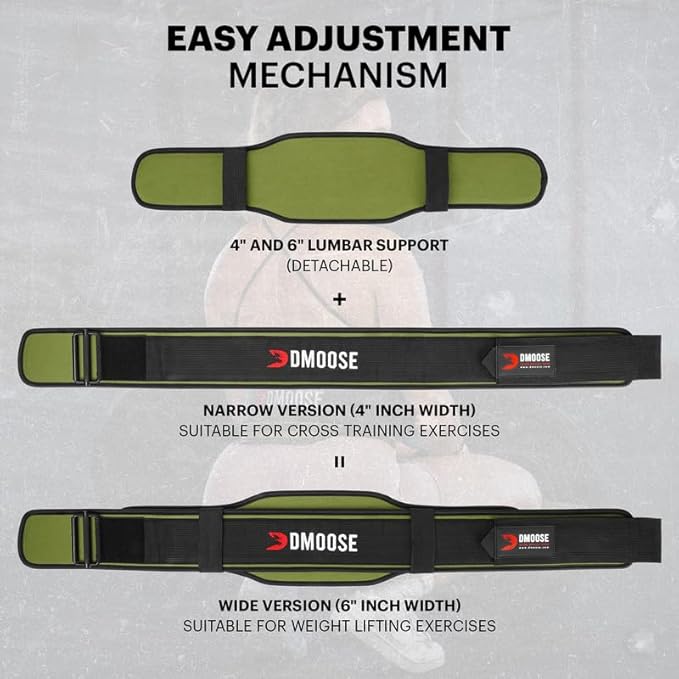 DMoose Weight Lifting Belt for Men & Women 2 in 1 Adjustable 4" 6" 6" Width