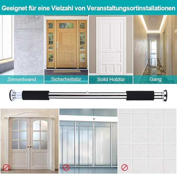 - Robust electroplate steel rods-This adjustable chin up is made of electroplate steel and provides you with full support for pull-ups and pull-ups