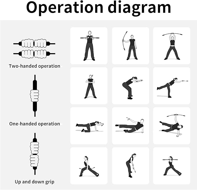 - {Use in multiple scenes} The elastic fitness bar suitable for all ages can be used under different weather conditions and scenarios, the flexibility for home, office or garden etc. The shaping effect is excellent and easy to learn. You can start with bare hands. Training your deep abs with 10 minutes a day to get rid of calories.