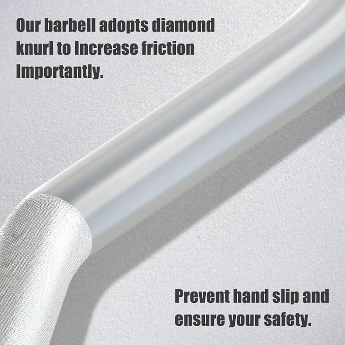 - 【KNURLED HANDLES】This Olympic barbell adopts diamond knurl for improving grip. These knurls with a 1.2mm medium-level knurling, increase friction, And it can increase the safety and ensure comfort when you exercises.