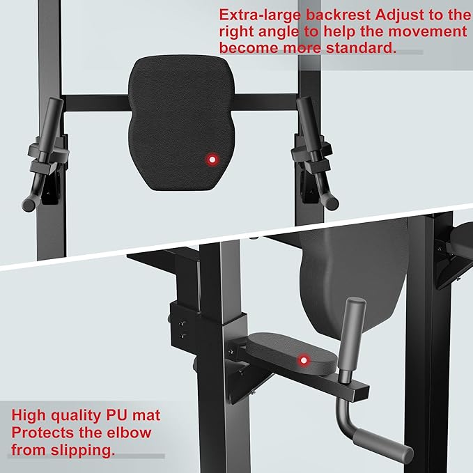 - 【Upgraded material】Elevens dip station is made of upgraded tubing, with super stability and a load capacity of 400LB.The armrests and backrest parts are made of high quality PU leather, which effectively protects the arms and back.