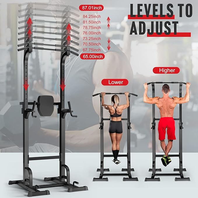 - 【Multiple uses】Elevens power tower can be used for pull-ups, double-bar flexion arms, double-bar flexion knees, push-ups and other kinds of training, all-round exercise all parts of the body.