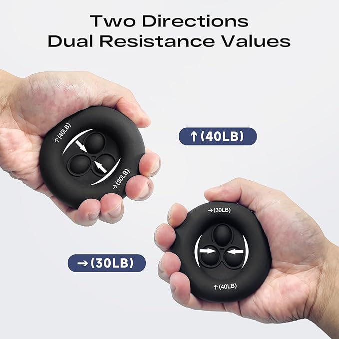 - ๐๐๐ฎ๐น ๐ฅ๐ฒ๐๐ถ๐๐๐ฎ๐ป๐ฐ๐ฒ ๐๐ฟ๐ถ๐ฝ ๐ง๐ฟ๐ฎ๐ถ๐ป๐ถ๐ป๐ด: Our exclusive grip ring offers dual resistance levels of 30LB and 40LB, perfect for progressive grip and forearm strength training. Suitable for all fitness levels, from beginners to advanced users.