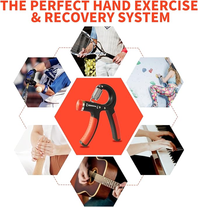 - 【Ideal for Atheletes & Musicians】Hand exercisers for strength Improve hand & finger strength for athletes (rock climbing enthusiasts, fitness, tennis, baseball, boxing, tennis, golf and shooting) and musicians (guitar players, bass players, pianists and violinists). See results fast using your hand exercise equipment just 5-10 minutes per day.