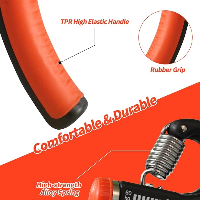 - 【Comfortable & Durable】Hand gripper strengthener made of reinforced metal alloy materials, the handle uses thermo-plastic rubber material, which belongs to environmentally friendly rubber, it has good wear resistance, skid resistance, and shock absorption and will not hurt the hand. Make your workouts more comfortable and safe.