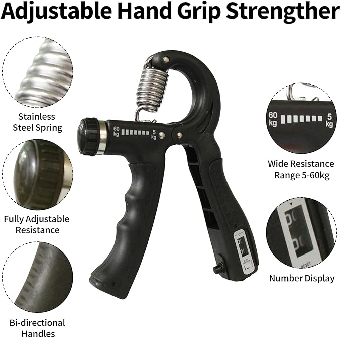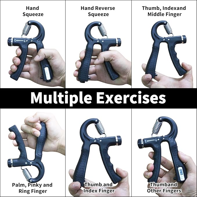 - 【Smart Counting Grip Strengthener】Add counting function, our hand strengthener could record your exercise number every time when you use it. So you can know better your training progress and training results with counting numbers. Just Press the button firmly to count automatically. Gently rotate button to clear units digital, push and rotate button to clear tens digitals.