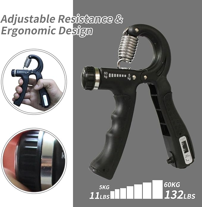 - 【Adjustable Resistance】LSKSSNG Grip trainer designed with adjustable resistance from 11-132lbs (5-60kg), the hand grip strengthener is effective to develop dexterity of fingers hands wrist, and forearm by increasing or decreasing the tension.