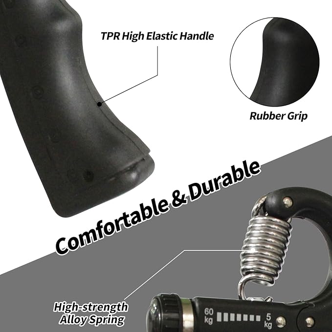 - 【Comfortable & Durable】Hand gripper strengthener made of reinforced metal alloy materials, the handle uses thermo-plastic rubber material, which belongs to environmentally friendly rubber, it has good wear resistance, skid resistance, and shock absorption and will not hurt the hand. Make your workouts more comfortable and safe.