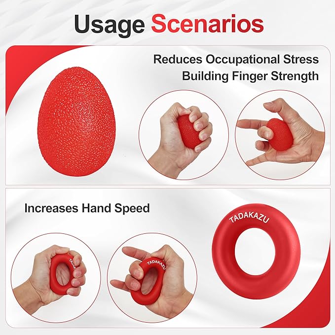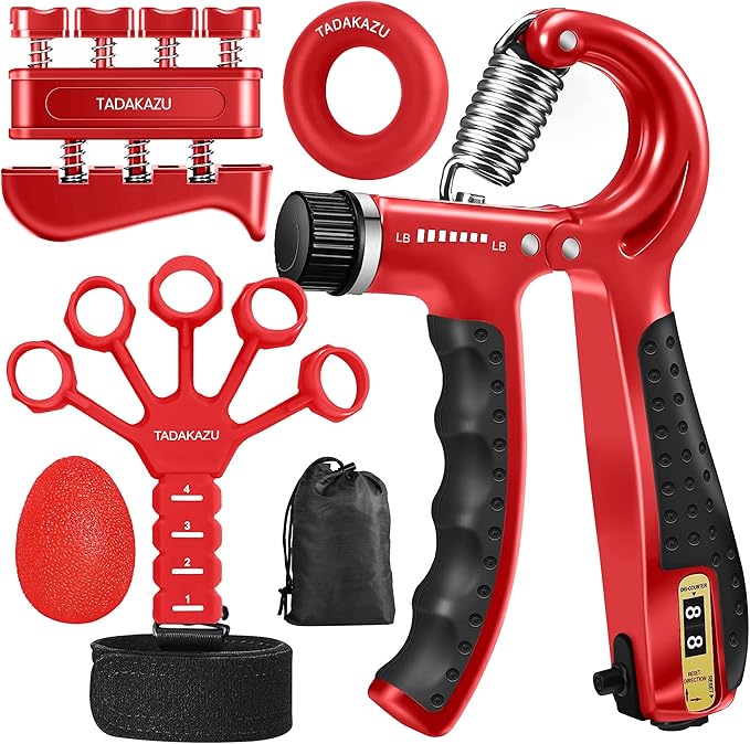 - 【Complete Hand Grip Strengthener Workout Kits 5 Pack】The grip trainer set includes an Adjustable Hand Gripper, Wrist Workout, Finger Stretcher Resistance Band, Hand Strengthener Grip Ring, and Stress Relief Grip Ball. These tools effectively strengthen and exercise your hands, fingers, wrists, elbows, and forearms.