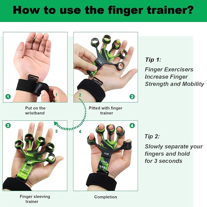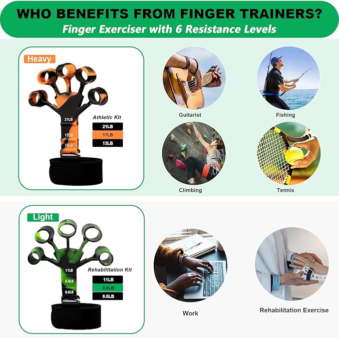 - 【Durable Finger Exerciser For Hand Strength】The finger stretcher can improve the finger strength of athletes (rock climbing, fitness, tennis, baseball, boxing) and musicians (guitar, bass, pianist, and violinist) and daily housework ( driving, typing, writing, working, etc.).
