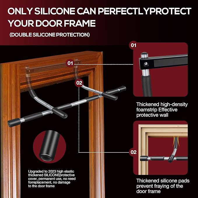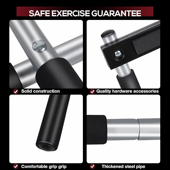 - ❖2.Foam Grips for Comfort: The pull-up bar features foam grips to provide comfort and reduce strain on the hands during workouts. Foam grips are not only comfortable but also help prevent slipping, ensuring a secure and effective grip while performing various exercises.