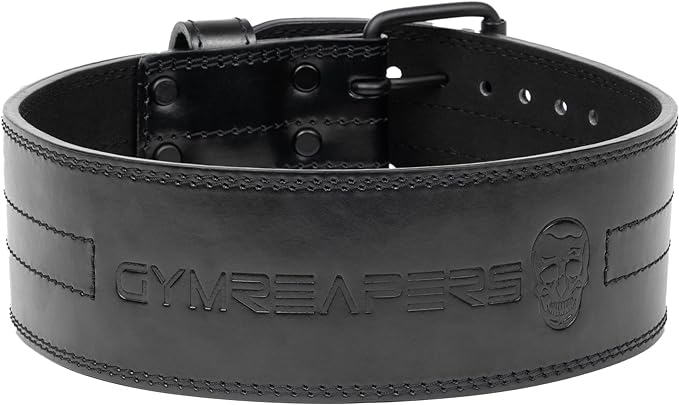 - STRONG GYM WEIGHT LIFTING BELT (POWER BELT) - Many gym belts on the market today are cheap and flimsy, our matte black double prong power belt comes with 6MM thickness and 4 inch width all around to provide the support and stability for your training. Gymreapers double prong power belt won't pinch, slip, or shift when secured. Ideal for powerlifting, weight lifting, and cross training.