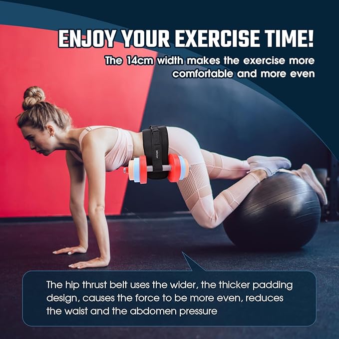- ππ’π ππ’π₯π§ππππ - π¨π£ππ₯ππππ πͺππππ₯ πππ£ π§ππ₯π¨π¦π ππππ§ : Our hip thrust belt is designed with wider and thicker padding to improve workout comfort when performing hip thrusts, the wider design allows for a more even force to be applied and reduces the pressure on your lower back and abdominal area.