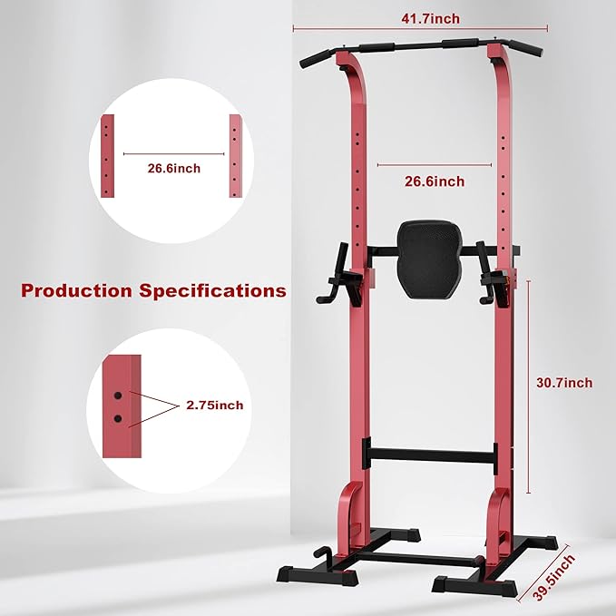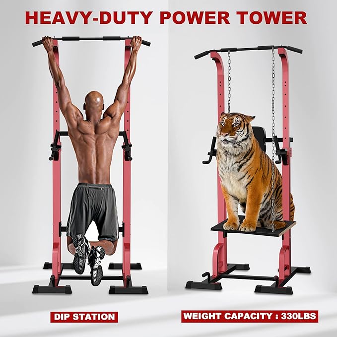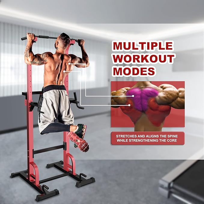 - 💪[MULTIFUNCTIONAL POWER TOWER] This exercise equipment allows you to perform various exercises. For example, pull-ups, vertical knee raises push-ups, deadlifts, squat training, etc. It helps to adjust your arms, core, shoulders, chest, and back, and is the ideal exercise equipment for a full-body workout.